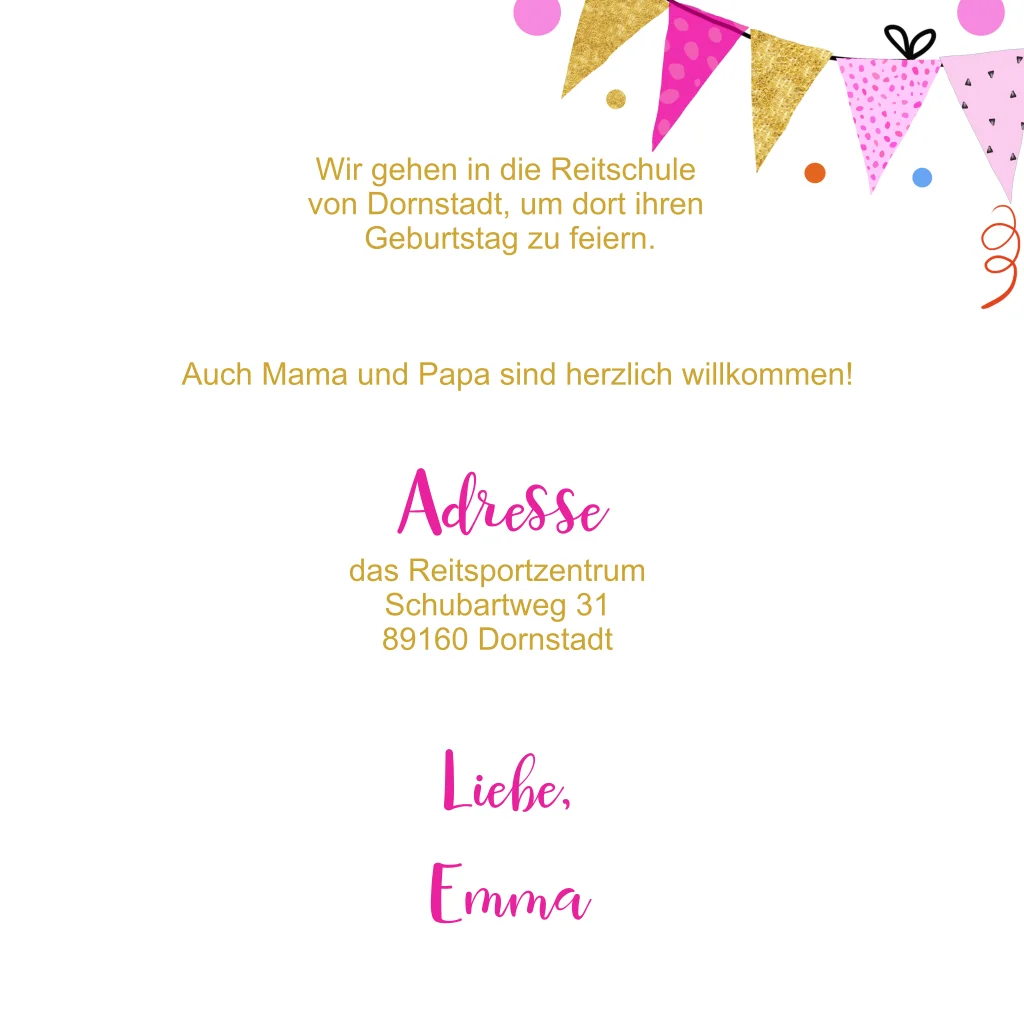 Kindereinladung mit Foto, Pferd und Luftballonen