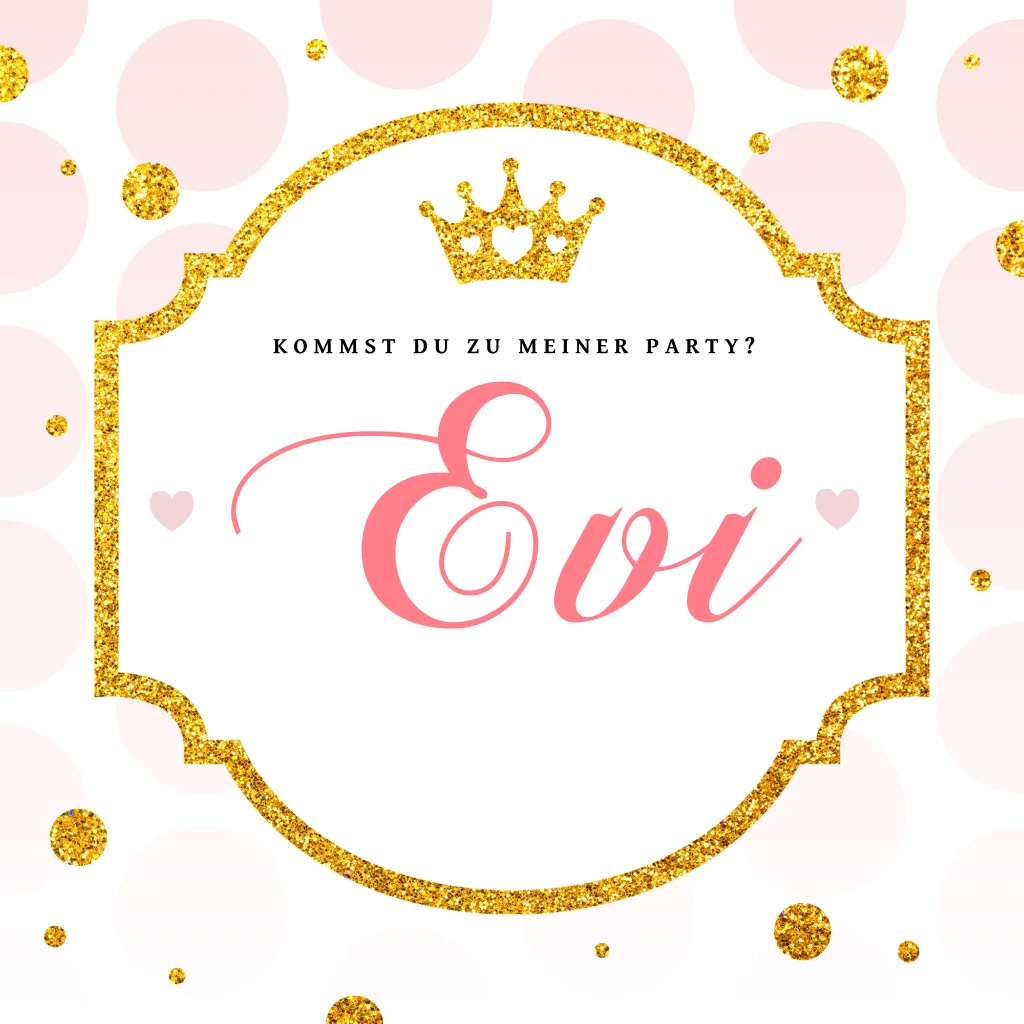 Süße Einladung für eine Prinzessin mit goldenen Punkten