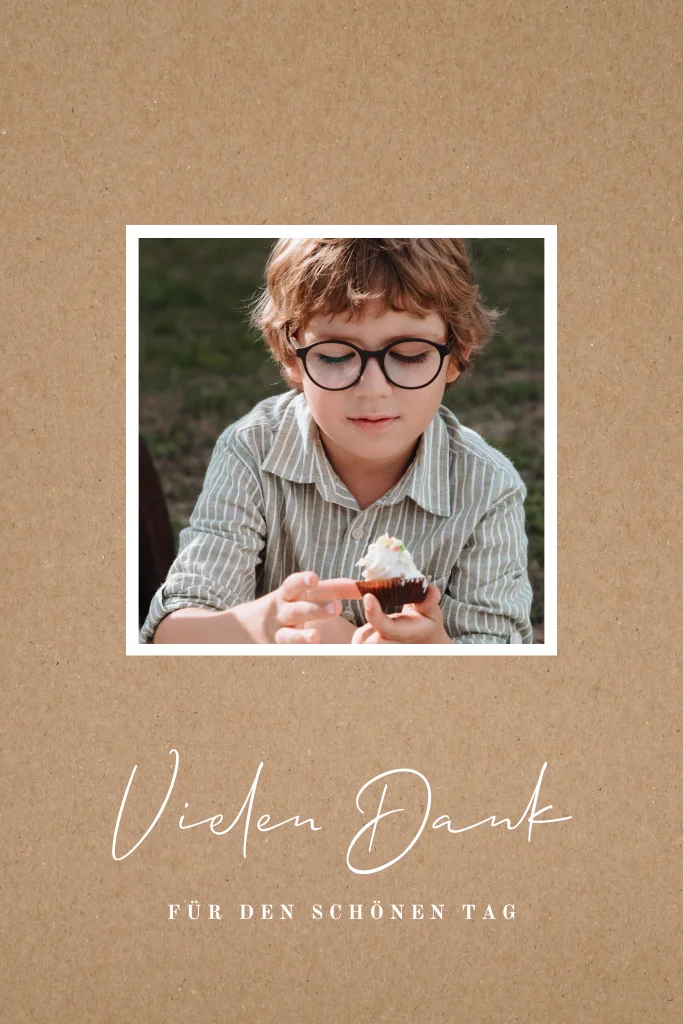 Dankeskarte Kommunion mit Kraft-Look Hintergrund und Foto