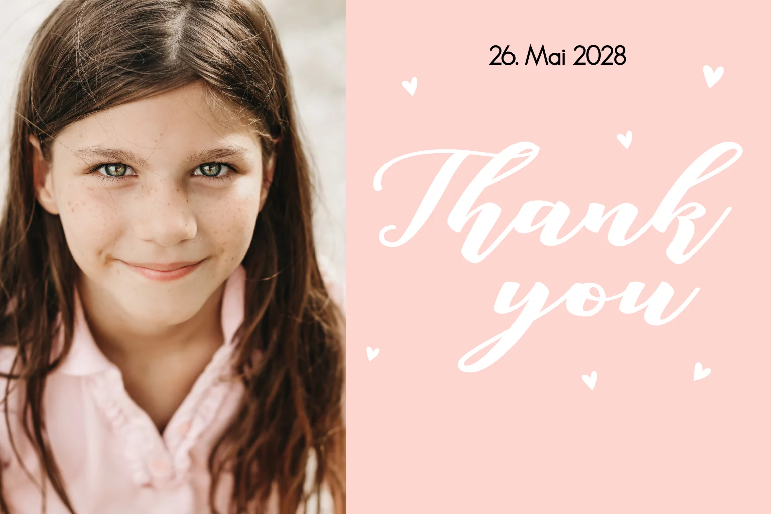Nach der Kommunionsfeier eures Kindes, die ihr gemeinsam mit euren Lieben gefeiert habt, freuen sich die Gäste im Nachgang über hübsche Danksagungskarten. Gestaltet frei nach Wunsch in unserem kinderleichten Editor. Mit Foto noch persönlicher!Melde dich für unseren Newsletter an und profitiere von exklusiven Angeboten, kreativen Ideen und Neuigkeiten aus unserer Produktwelt. Als Dankeschön für deine Anmeldung schenken wir dir einen kostenlosen Probedruck deiner Karte.