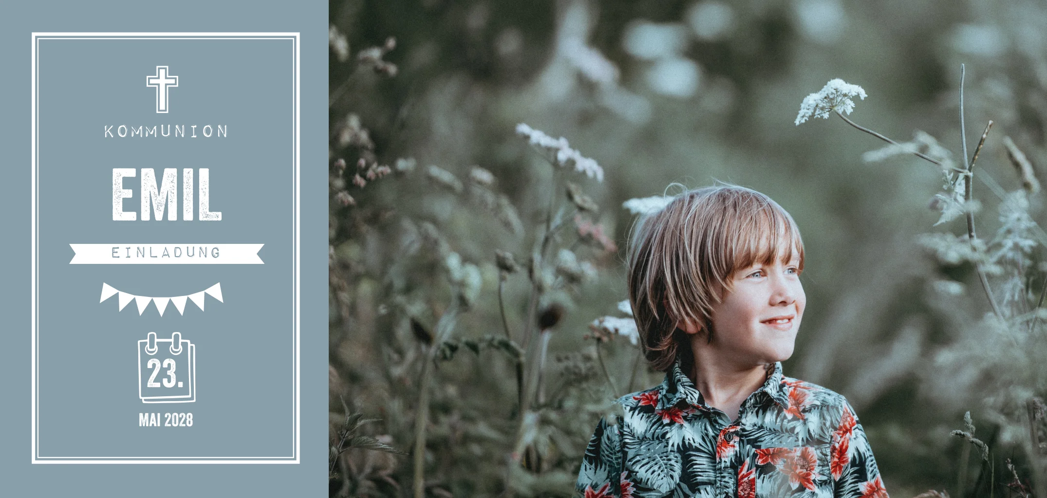 Der große Tag eures Kindes rückt näher: die Erstkommunion. Wählt ein schönes Foto des Kindes aus, das innen oder außen positioniert wird, abhängig vom Design und Format der Karte. Gestaltet nach Wunsch in unserem kinderleichten Editor.Melde dich für unseren Newsletter an und entdecke exklusive Angebote, kreative Inspirationen und spannende Neuigkeiten aus unserer Produktwelt. Als Dankeschön erhältst du 5 € Rabatt auf deine nächste Bestellung.
