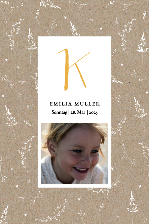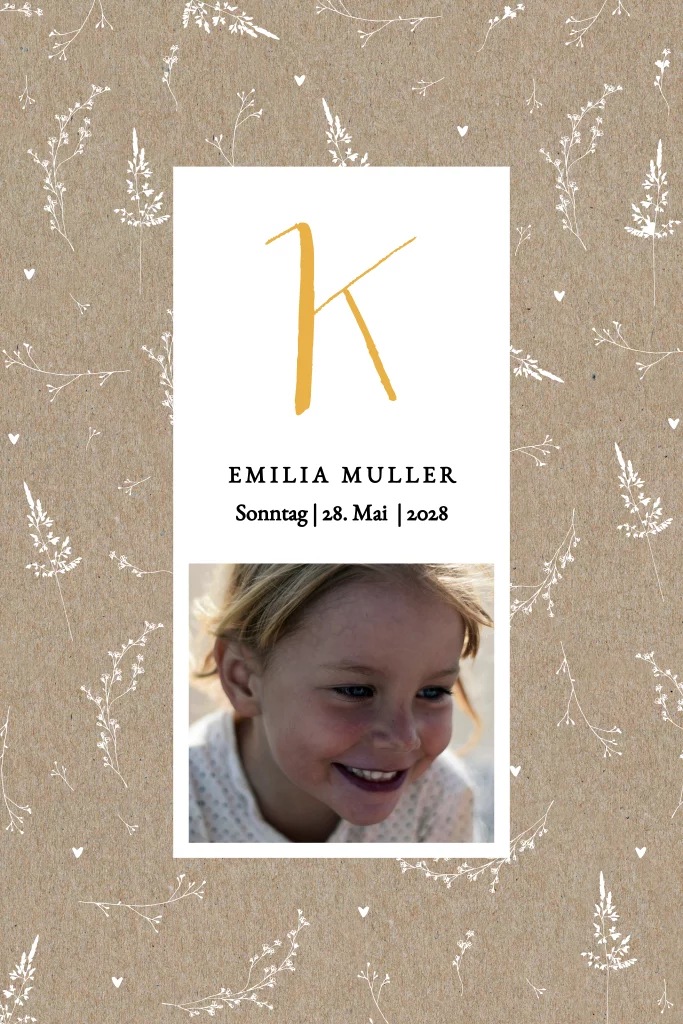 Einladung Kommunion im Kraftlook mit Foto und Zweigen