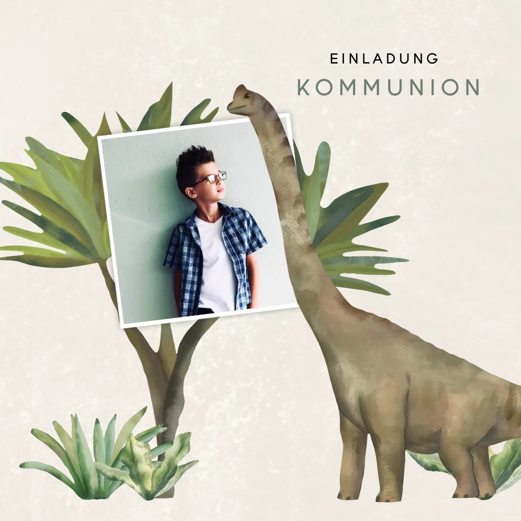 Einladung zur Kommunion mit Foto, Dinos und Pflanzen