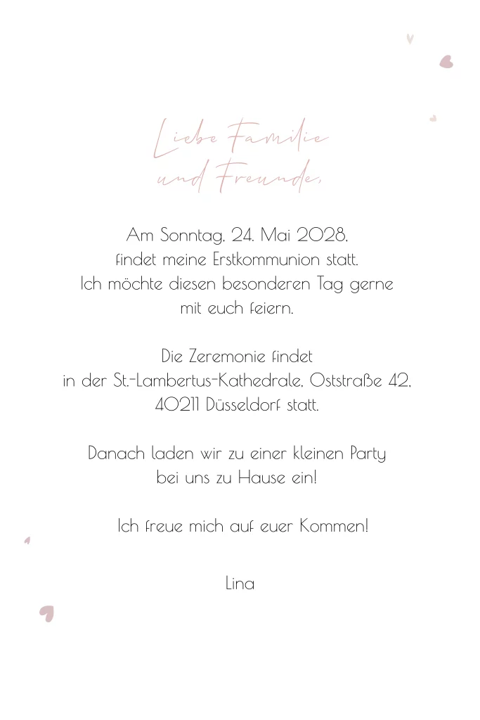 Das Design der von dir gewählten Karte wurde automatisch in andere Formate umgestellt. Wähle einfach deinen Wunschformat aus und platziere alle Texte und Elemente an der richtigen Stelle im Editor. Du hast Fragen oder dein Favorit steht nicht zur Auswahl? Dann kontaktiere uns bitte und wir werden uns gemeinsam darum kümmern!