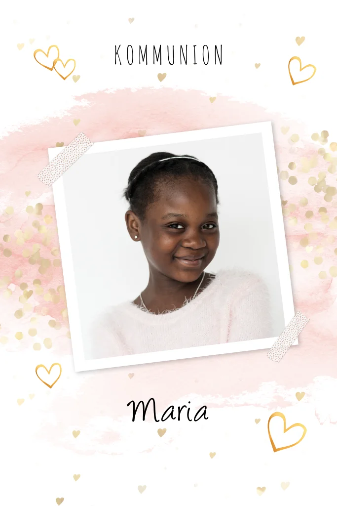 Einladung zur Kommunion mit Foto und rosa Aquarell Hintergrund