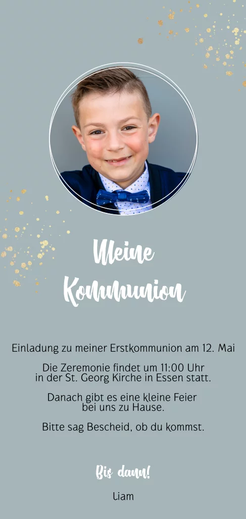 Das Design der von dir gewählten Karte wurde automatisch in andere Formate umgestellt. Wähle einfach deinen Wunschformat aus und platziere alle Texte und Elemente an der richtigen Stelle im Editor. Du hast Fragen oder dein Favorit steht nicht zur Auswahl? Dann kontaktiere uns bitte und wir werden uns gemeinsam darum kümmern!