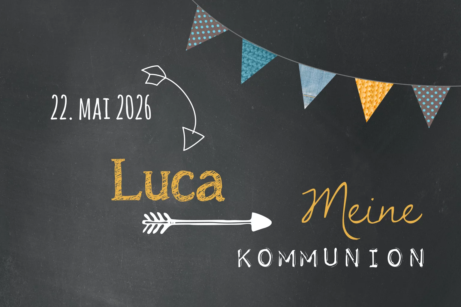 Kreidetafel Einladung zur Kommunion mit verschiedenen Schriftarten