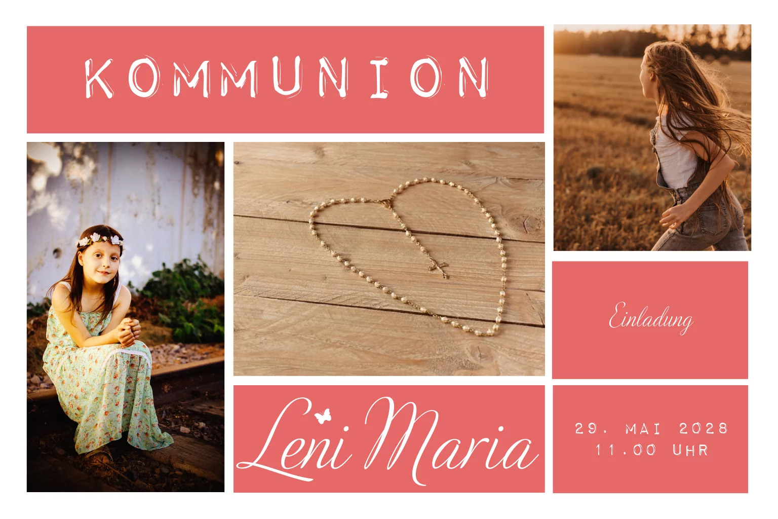 Elegante Einladung zur Erstkommunion mit Fotos und Textfeldern