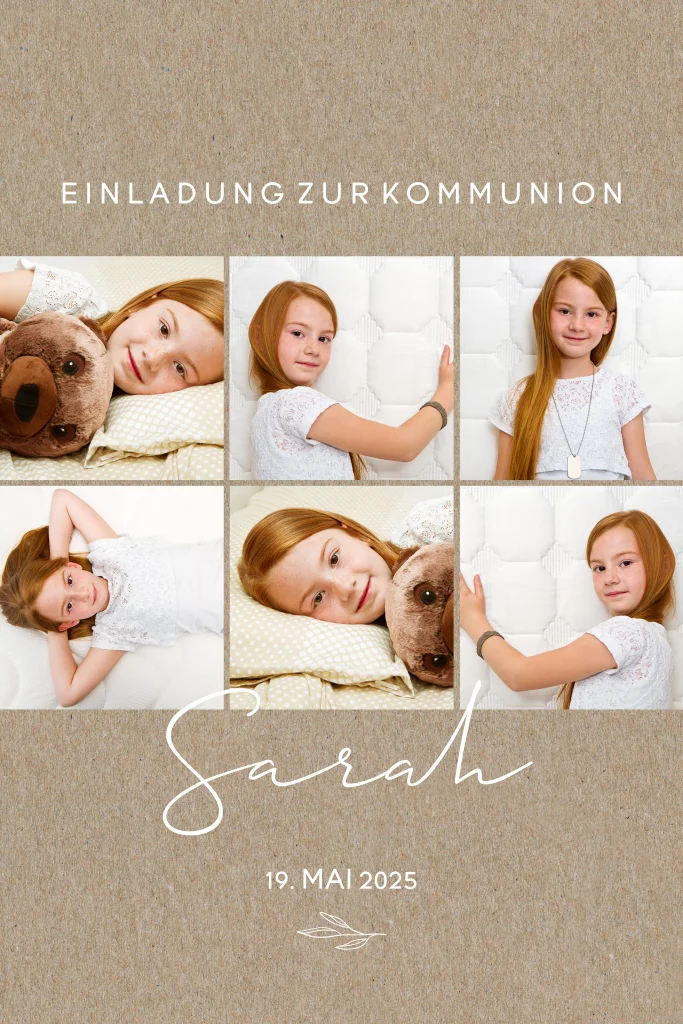 Einladung zur Kommunion mit vielen Fotos und Zweig im Kraftlook
