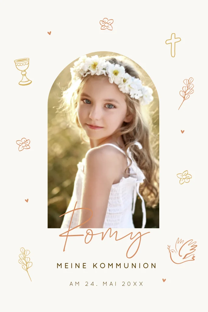 Auf der Suche nach mehr Inspiration? Sieh dir hier unsere Kommunionseinladungen an.