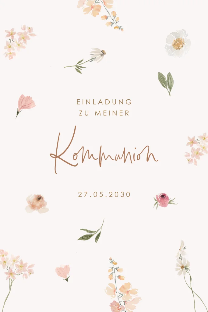 Fröhliche Einladung zur Kommunion mit Frühlingsblumen