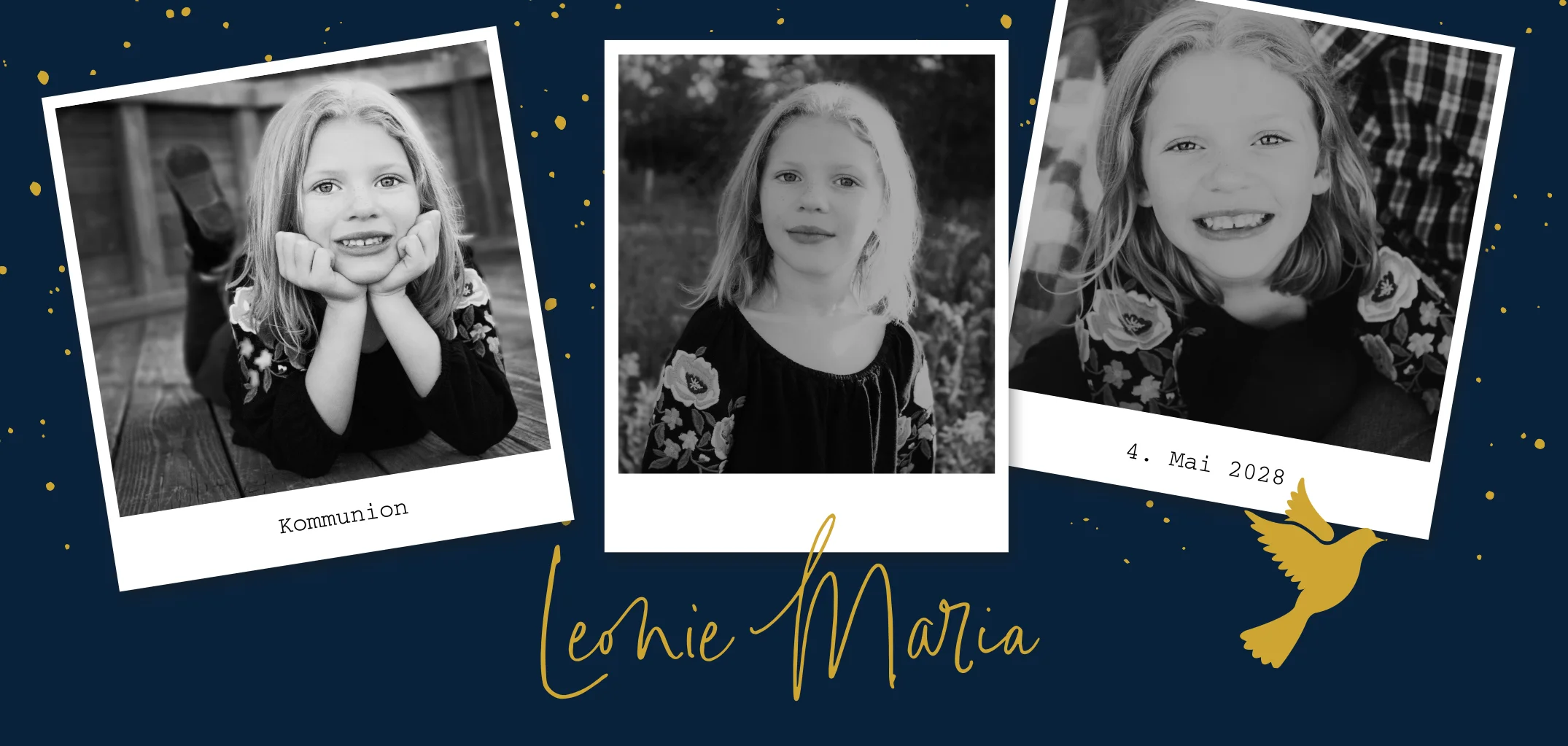Einladung zur Erstkommunion mit Fotos und goldenen Elementen