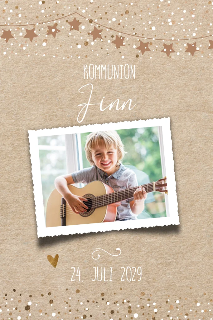 Die Kommunion ist ein christliches Ereignis, bei dem das Kind ein vollständiges Mitglied der katholischen Kirche wird und die für die Familie mindestens so wichtig ist wie Taufe oder Hochzeit. Ein guter Grund, ein großes Fest zu feiern und Familie, Verwandte und Nachbarn einzuladen.Das Design der von dir gewählten Karte wurde automatisch in andere Formate umgestellt. Wähle einfach deinen Wunschformat aus und platziere alle Texte und Elemente an der richtigen Stelle im Editor. Du hast Fragen oder dein Favorit steht nicht zur Auswahl? Dann kontaktiere uns bitte und wir werden uns gemeinsam darum kümmern!