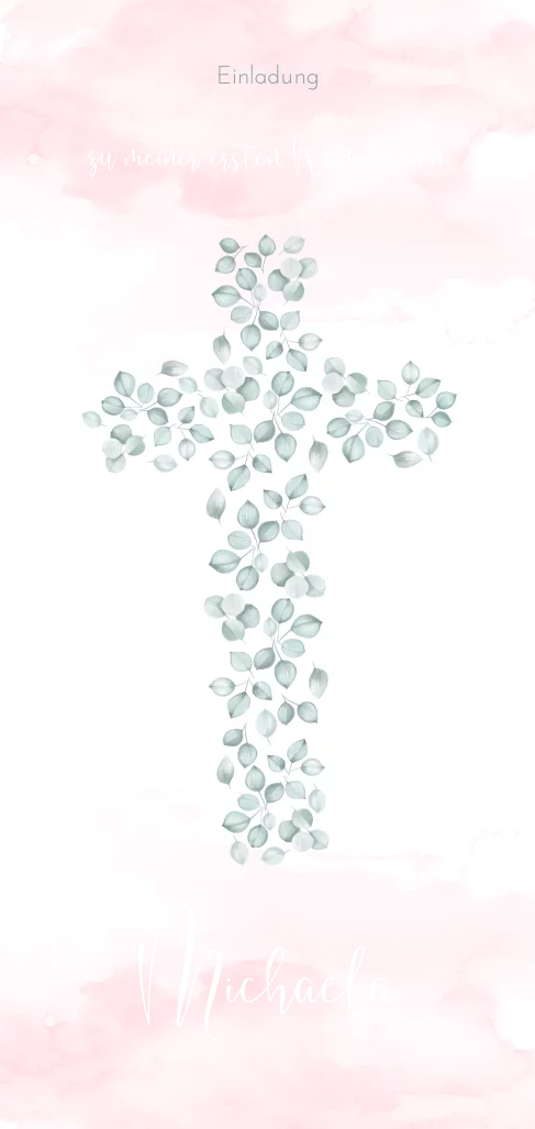 Mit dieser schicken Kommunions- und/oder Konfirmationseinladung mit einem Kreuz aus Eukalyptusblättern, Wasserfarben, Foto und Goldfolie lädst du stilvoll ein.Das Design der von dir gewählten Karte wurde automatisch in andere Formate umgestellt. Wähle einfach deinen Wunschformat aus und platziere alle Texte und Elemente an der richtigen Stelle im Editor. Du hast Fragen oder dein Favorit steht nicht zur Auswahl? Dann kontaktiere uns bitte und wir werden uns gemeinsam darum kümmern!