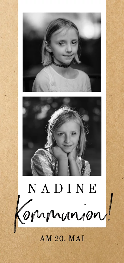 Tolle Kommunion Karte mit Fotostreifen und Kraftpapier-LookMelde dich für unseren Newsletter an und profitiere von exklusiven Angeboten, kreativen Ideen und Neuigkeiten aus unserer Produktwelt. Als Dankeschön für deine Anmeldung schenken wir dir einen kostenlosen Probedruck deiner Karte.