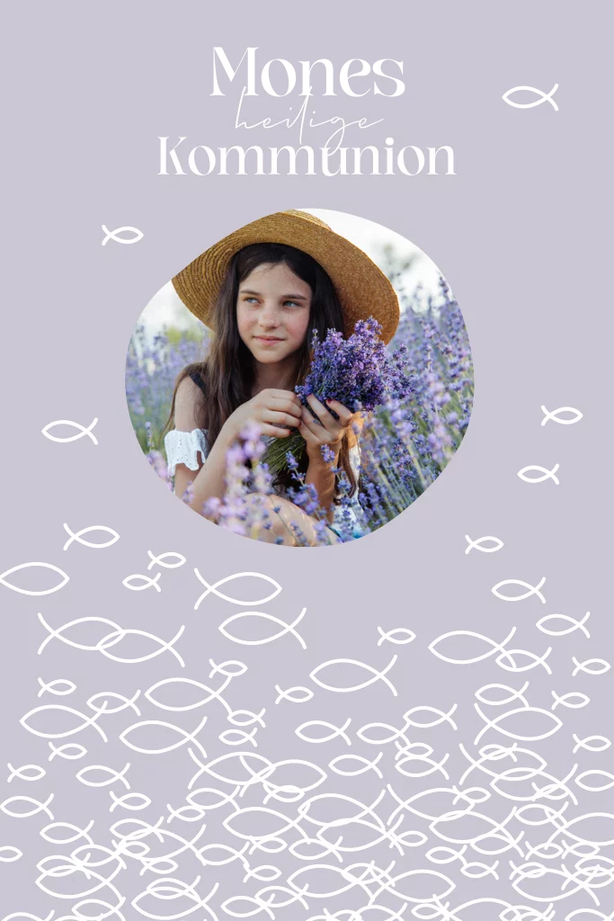 Einfache Hochformat-Karte mit Ichthys Fischen, Foto und Goldfolie.Das Design der von dir gewählten Karte wurde automatisch in andere Formate umgestellt. Wähle einfach deinen Wunschformat aus und platziere alle Texte und Elemente an der richtigen Stelle im Editor. Du hast Fragen oder dein Favorit steht nicht zur Auswahl? Dann kontaktiere uns bitte und wir werden uns gemeinsam darum kümmern!