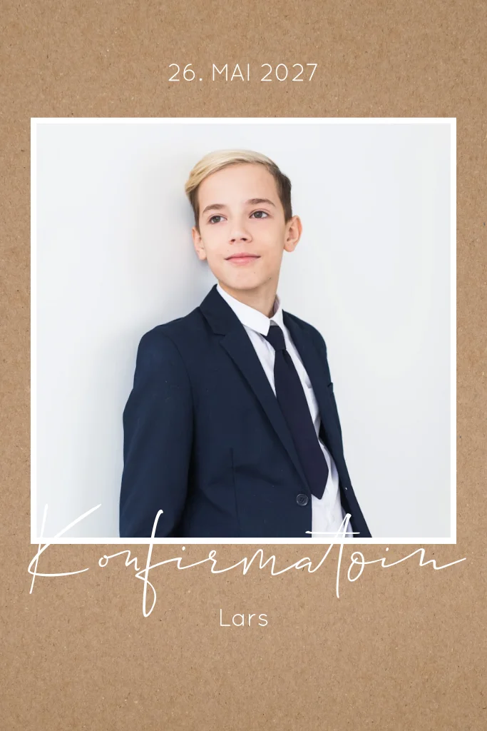 Einladung zur Konfirmation im Kraft-Look mit großem Foto