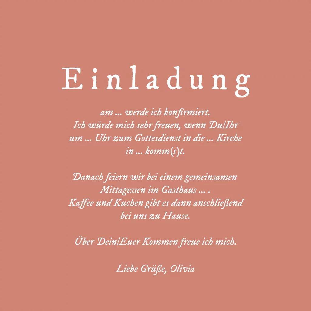 Das Design der von dir gewählten Karte wurde automatisch in andere Formate umgestellt. Wähle einfach deinen Wunschformat aus und platziere alle Texte und Elemente an der richtigen Stelle im Editor. Du hast Fragen oder dein Favorit steht nicht zur Auswahl? Dann kontaktiere uns bitte und wir werden uns gemeinsam darum kümmern!