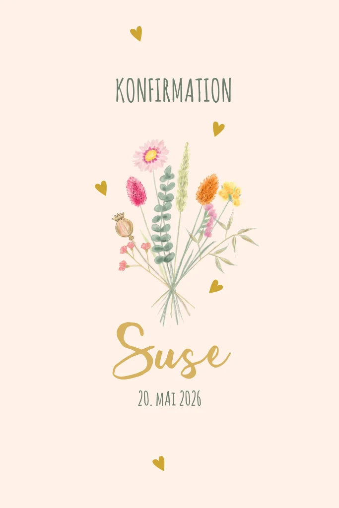 Einladung zur Konfirmation in rosa mit bunten Blumen
