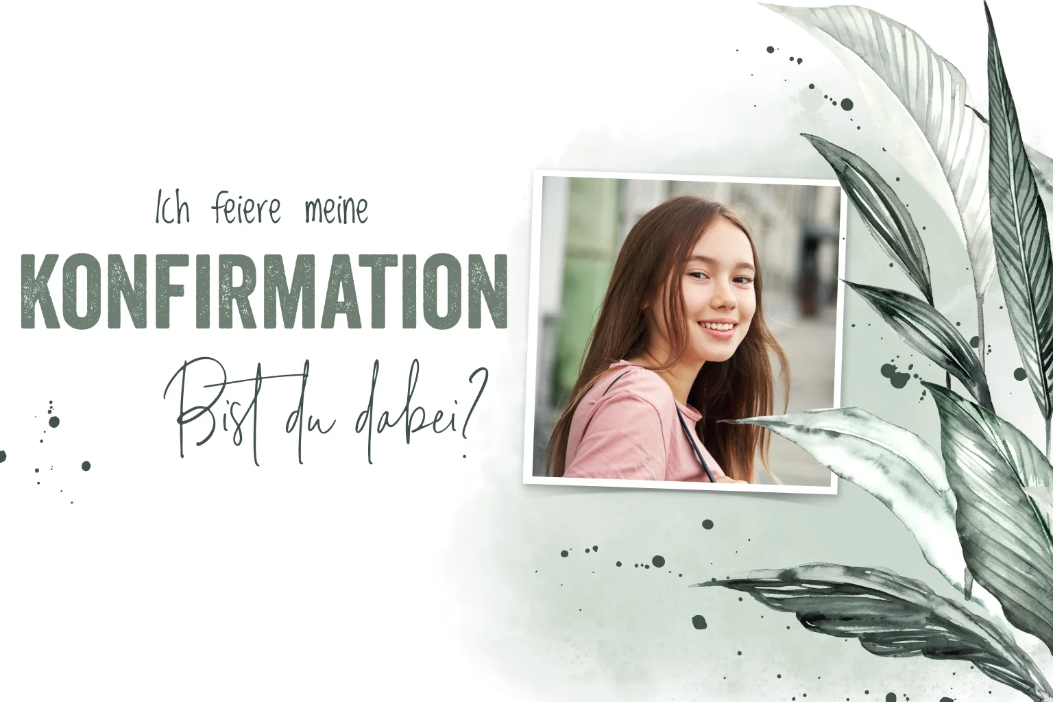 Einladung zur Konfirmation mit Zweige, Blättern und Foto