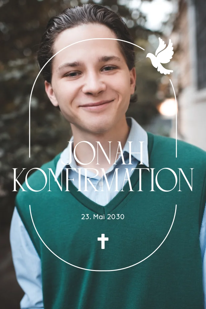 Einladung zur Konfirmation für Jungen mit Foto und Taube