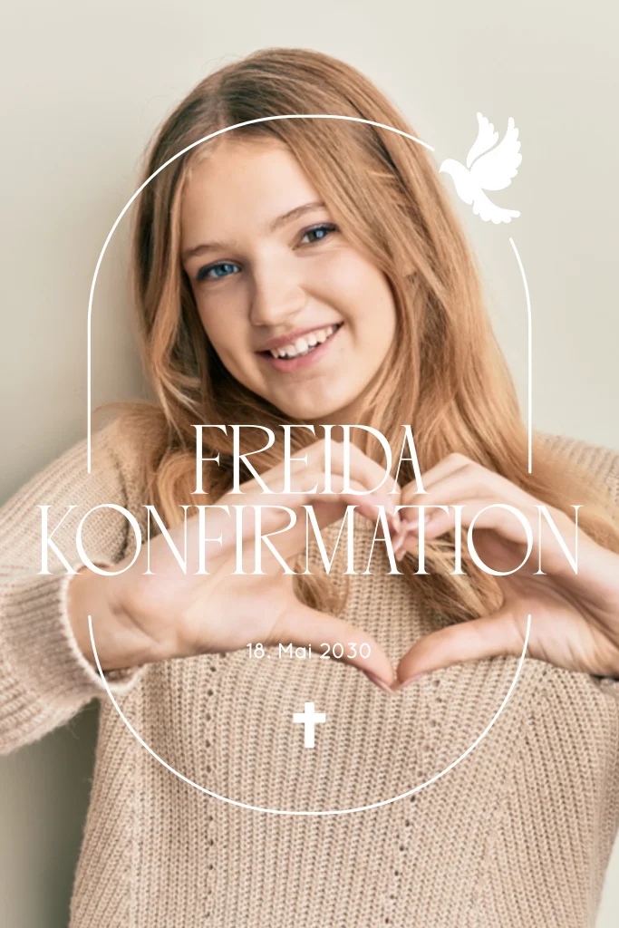 Einladung zur Konfirmation für Mädchen mit Foto und Taube