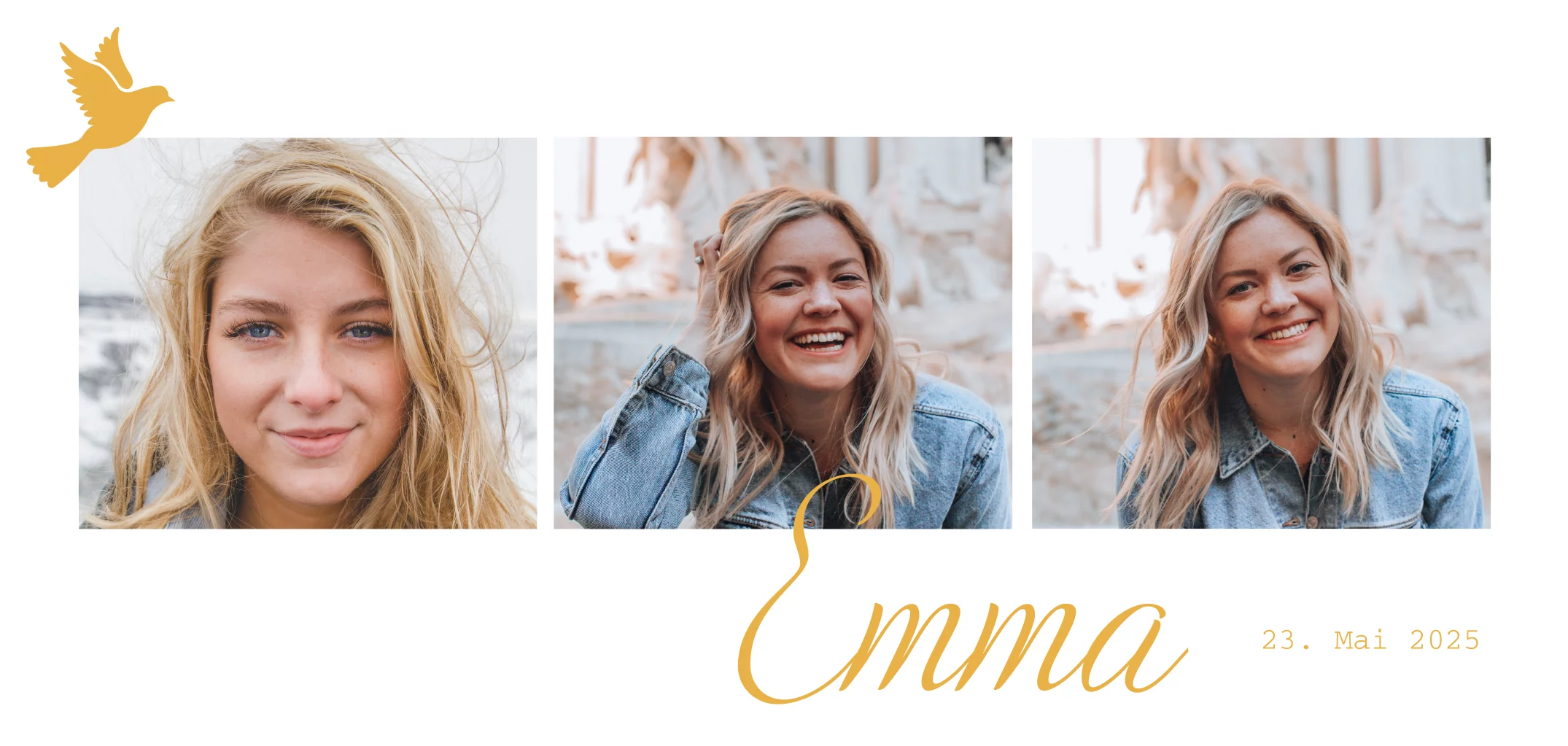 Elegante Einladung zur Konfirmation mit Fotos und goldenen Elementen