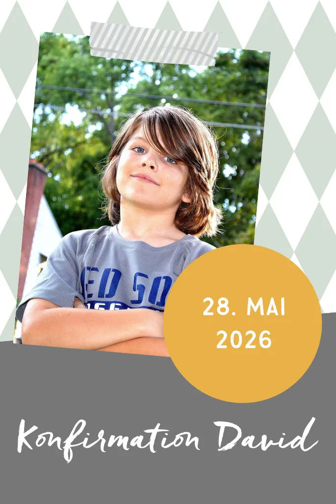 Hippe Einladung zur Konfirmation mit Foto und Rautenmuster