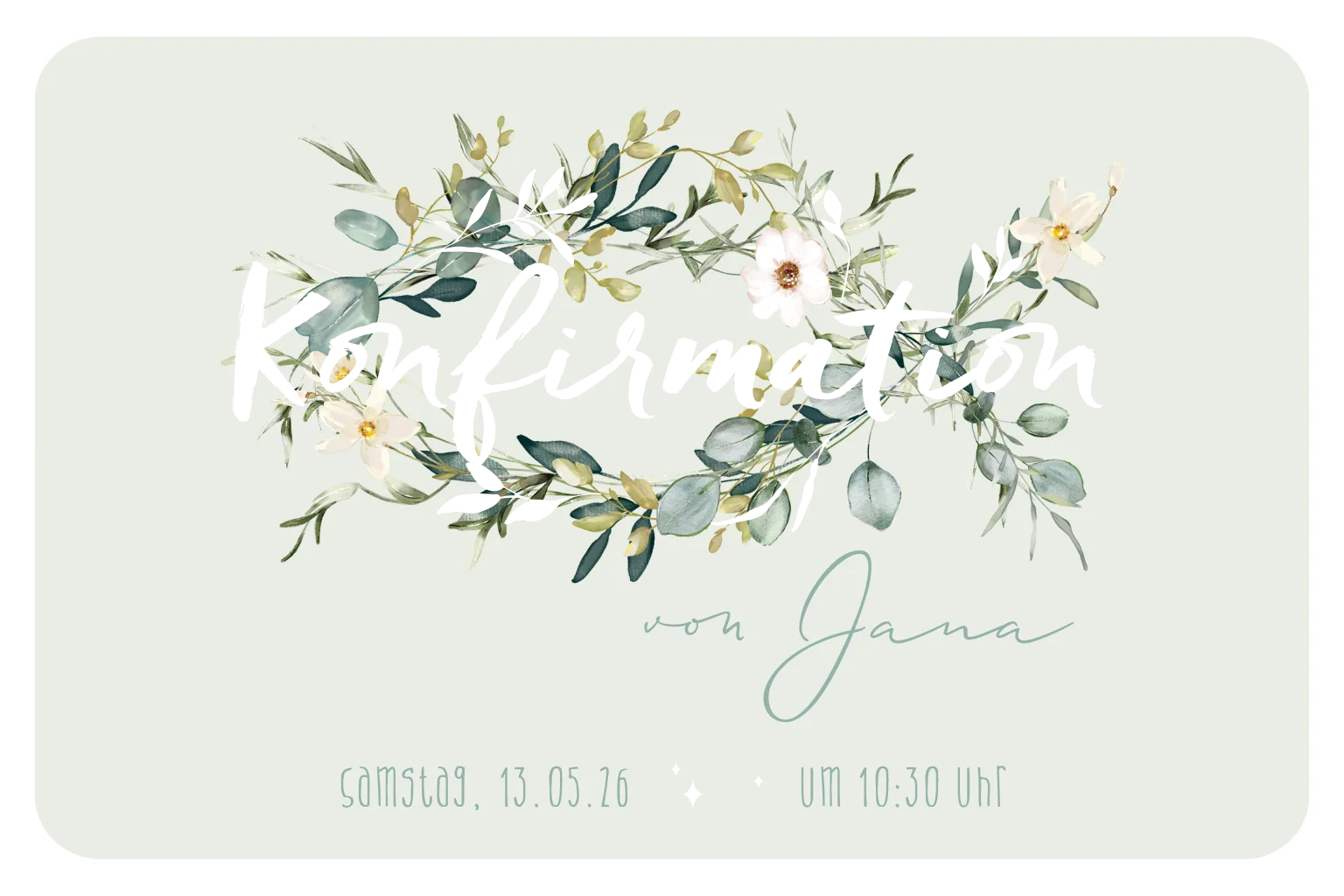 Das Design der von dir gewählten Karte wurde automatisch in andere Formate umgestellt. Wähle einfach deinen Wunschformat aus und platziere alle Texte und Elemente an der richtigen Stelle im Editor. Du hast Fragen oder dein Favorit steht nicht zur Auswahl? Dann kontaktiere uns bitte und wir werden uns gemeinsam darum kümmern!