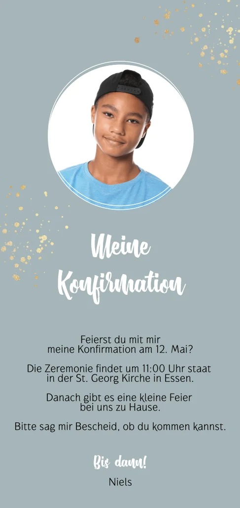 Das Design der von dir gewählten Karte wurde automatisch in andere Formate umgestellt. Wähle einfach deinen Wunschformat aus und platziere alle Texte und Elemente an der richtigen Stelle im Editor. Du hast Fragen oder dein Favorit steht nicht zur Auswahl? Dann kontaktiere uns bitte und wir werden uns gemeinsam darum kümmern!