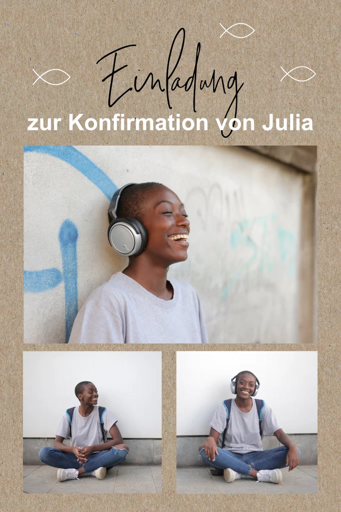 Kraftlook Einladung zur Konfirmation mit Fotos und Fische