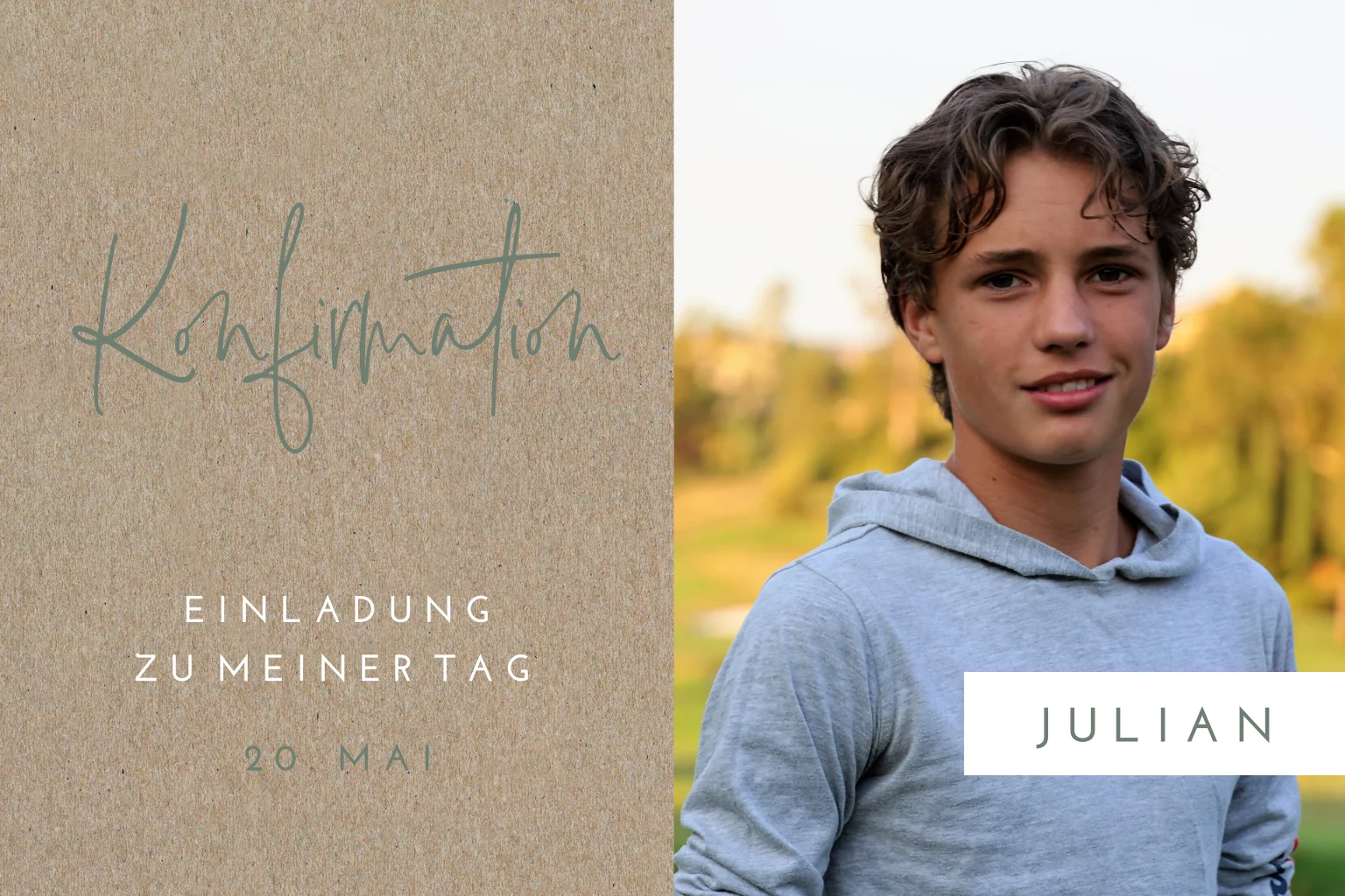Kraftlook Konfirmationskarte mit großem Bild und grüner Text