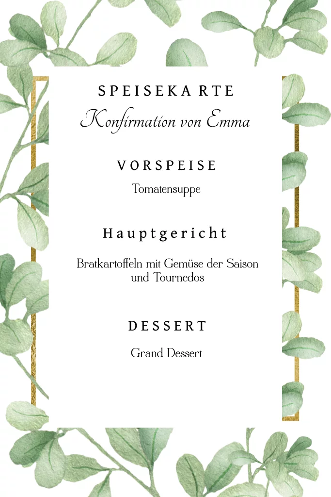 Das Design der von dir gewählten Karte wurde automatisch in andere Formate umgestellt. Wähle einfach deinen Wunschformat aus und platziere alle Texte und Elemente an der richtigen Stelle im Editor. Du hast Fragen oder dein Favorit steht nicht zur Auswahl? Dann kontaktiere uns bitte und wir werden uns gemeinsam darum kümmern!