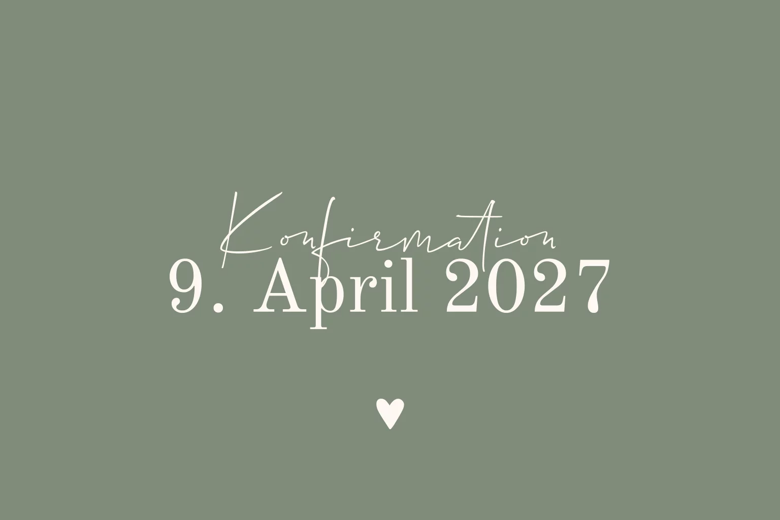 Schlichte Einladung zur Konfirmation in Grün und Weiß mit Herz