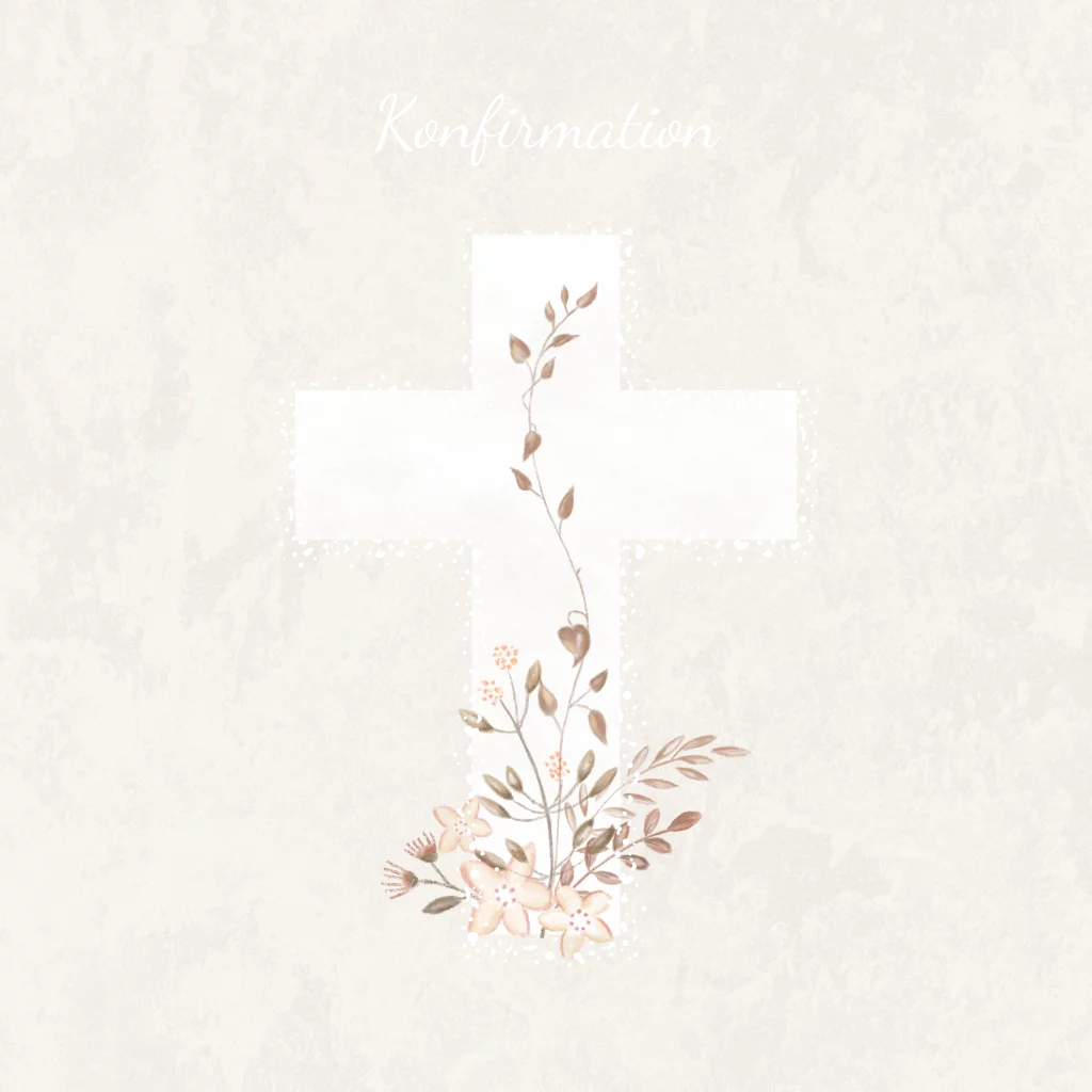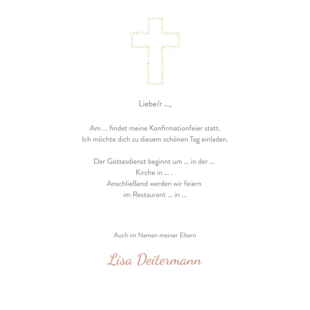 Wunderschöne Konfirmationskarte mit edeler Goldfolie und gemalten Blumen und deinem eigenen Foto auf der Innenseite. Diese Karte wirkt naturbelassen und einladend, was sie zur perfekten Konfirmationseinladung macht. Gestalte nach Wunsch im Editor.