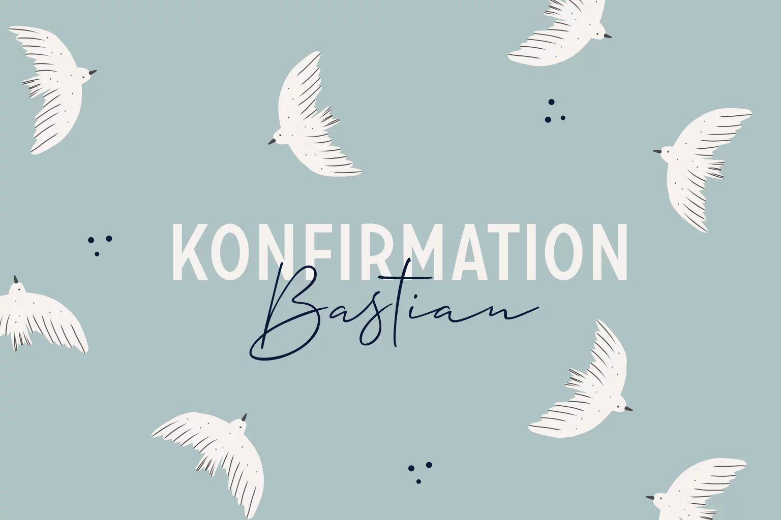 Schöne Konfirmationskarte mit weiße Tauben und blauem Hintergrund