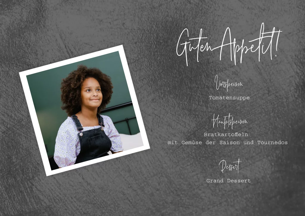 Tischset mit Polaroid auf grauem Hintergrund
