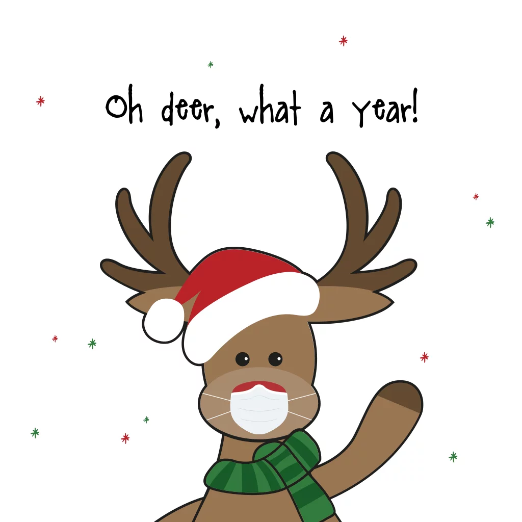 Witzige Einladung zur Weihnachtsfeier mit Rentier mit Mundschutz