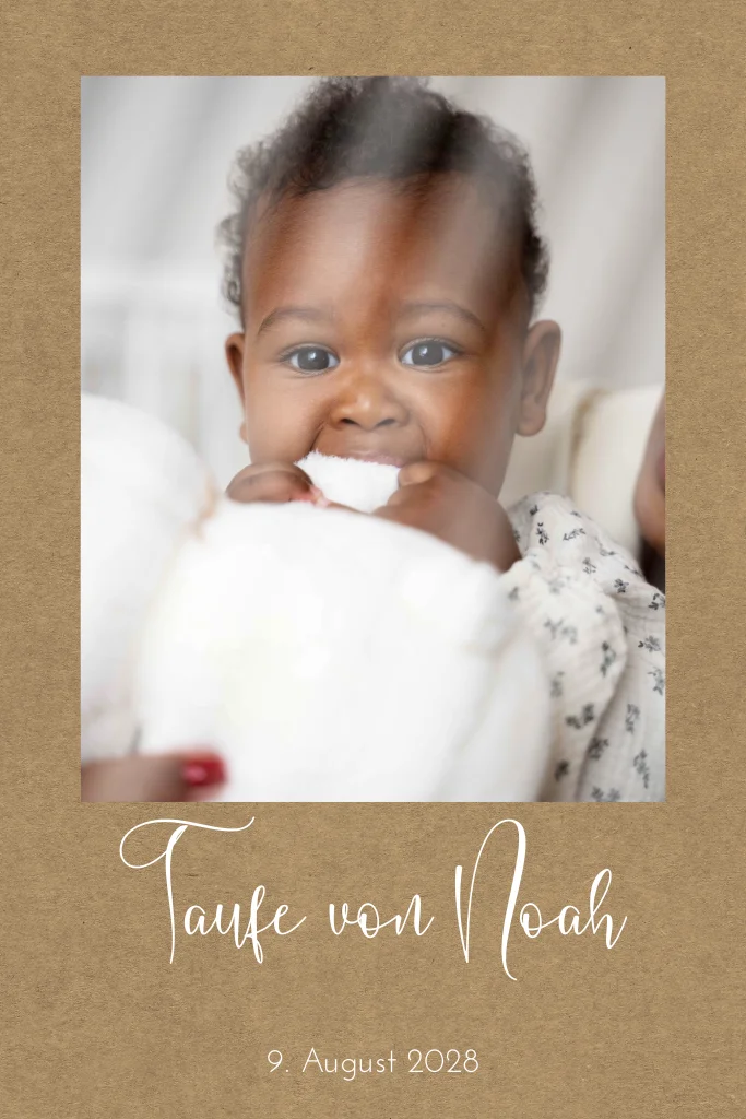 Einladung zur Taufe Polaroidfoto mit Hochglanz im KraftlookMelde dich für unseren Newsletter an und entdecke exklusive Angebote, kreative Inspirationen und spannende Neuigkeiten aus unserer Produktwelt. Als Dankeschön erhältst du 5 € Rabatt auf deine nächste Bestellung.