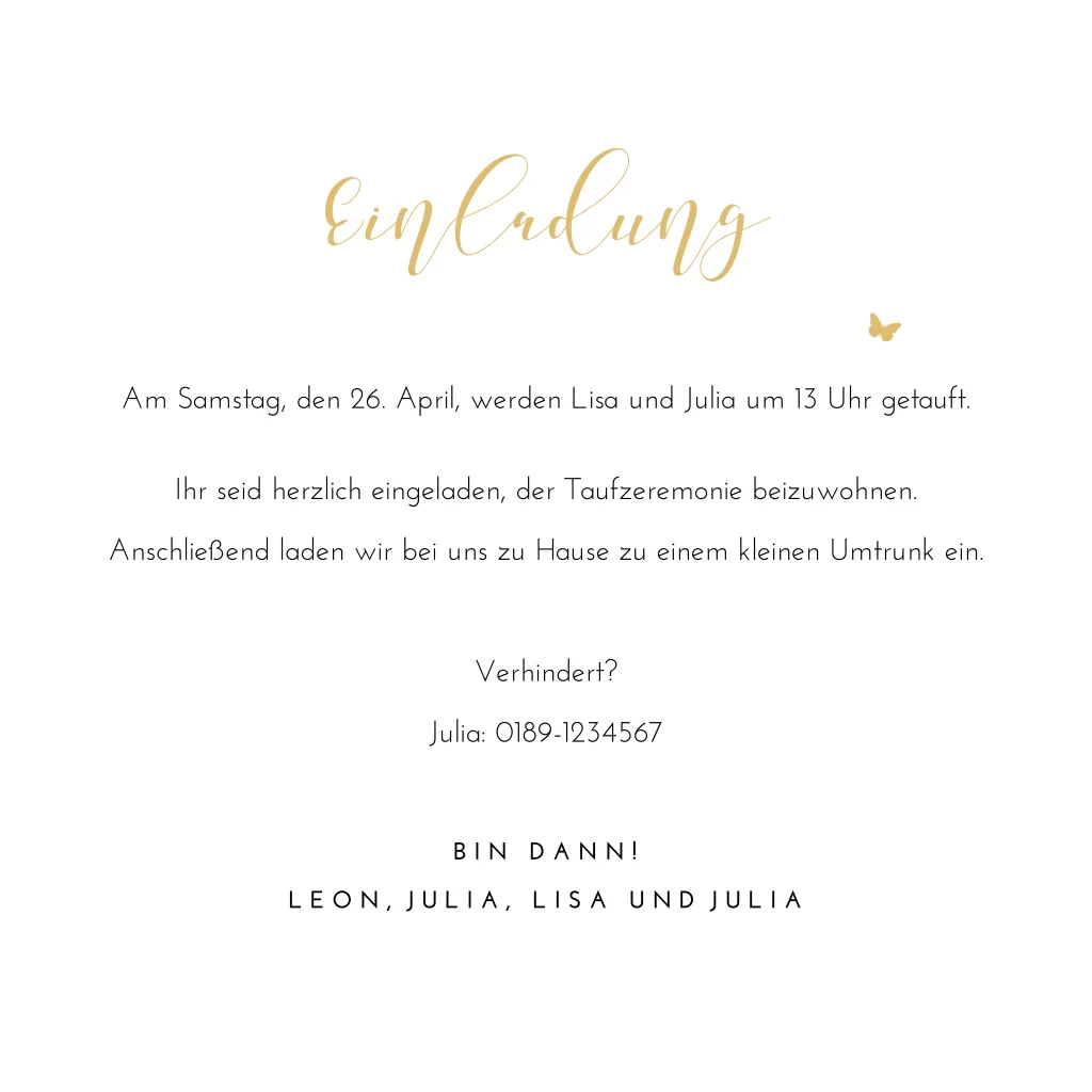 Das Design der von dir gewählten Karte wurde automatisch in andere Formate umgestellt. Wähle einfach deinen Wunschformat aus und platziere alle Texte und Elemente an der richtigen Stelle im Editor. Du hast Fragen oder dein Favorit steht nicht zur Auswahl? Dann kontaktiere uns bitte und wir werden uns gemeinsam darum kümmern!
