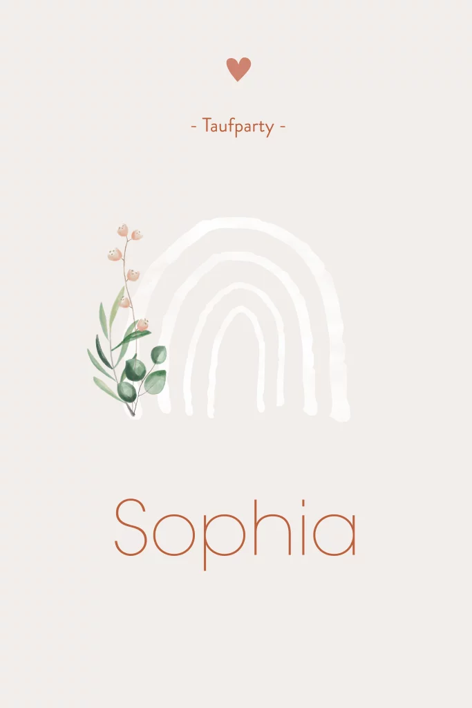 Wunderschöne Einladung zur Taufe mit dezentem Regenbogen und elegantem Blumendesign. Alle Elemente der Einladung sind individuell anpassbar.Melde dich für unseren Newsletter an und profitiere von exklusiven Angeboten, kreativen Ideen und Neuigkeiten aus unserer Produktwelt. Als Dankeschön für deine Anmeldung schenken wir dir einen kostenlosen Probedruck deiner Karte.