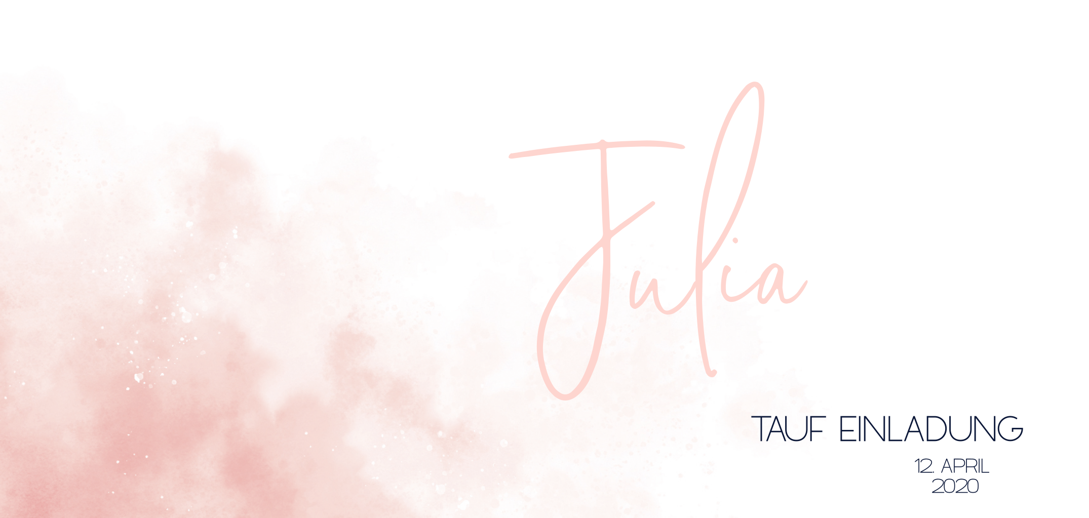 Süße Einladung zur Taufe im Querformat mit rosa Aquarell-Look