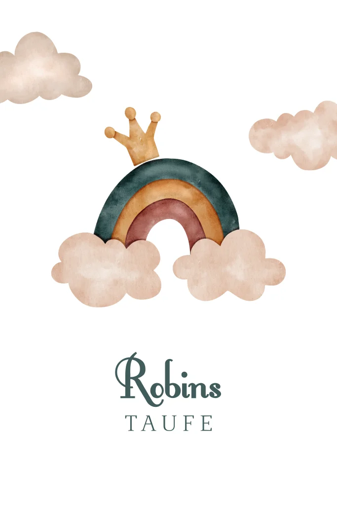 Taufeinladung mit Wolken, Krone und Regenbogen