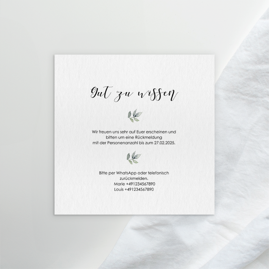 Hinweis: Ein Einlegeblatt is das perfekte Extra für deine Hochzeitseinladungen. Auf den dünnen Einlegern hast du die Möglichkeit, extra Infos für die Gäste hinzuzufügen.