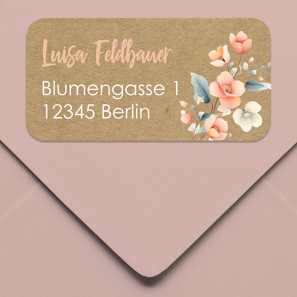 Absenderaufkleber Einschulung mit rosa Blümchen und Rosegoldfolie