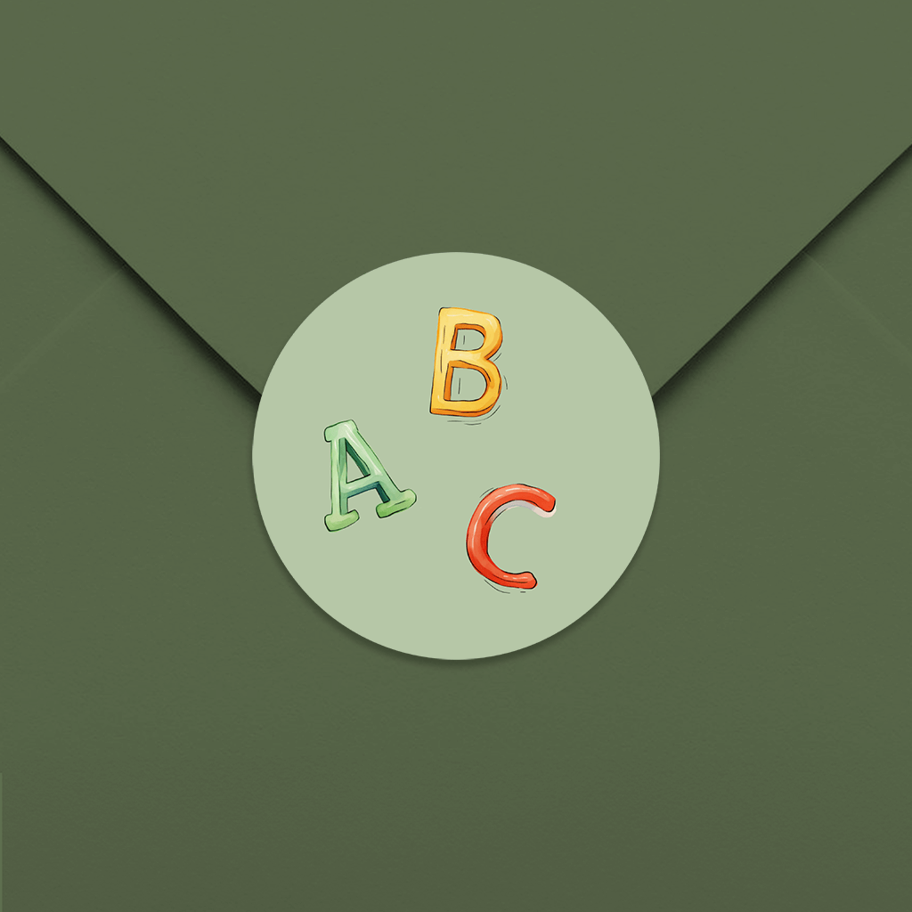 Aufkleber Einschulung ABC mit grünem Hintergrund.