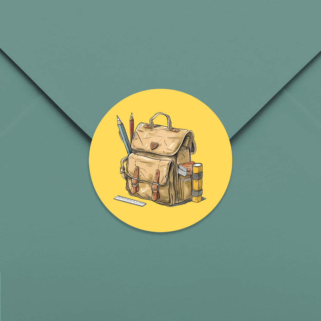 Aufkleber Einschulung Retro Schulrucksack mit gelbem Hintergrund
