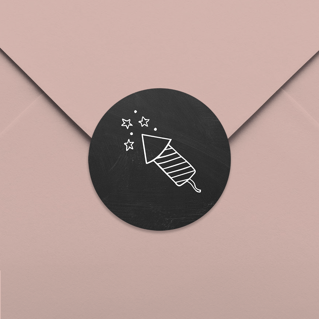 Aufkleber zur Einschulung mit Schultafel Hintergrund und Feuerwerk.