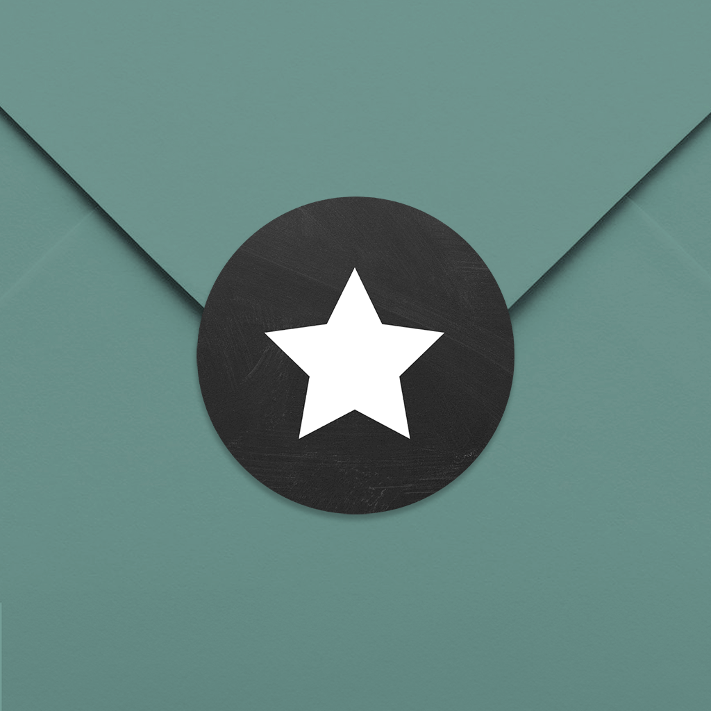 Aufkleber zur Einschulung mit Schultafel Hintergrund und Stern.