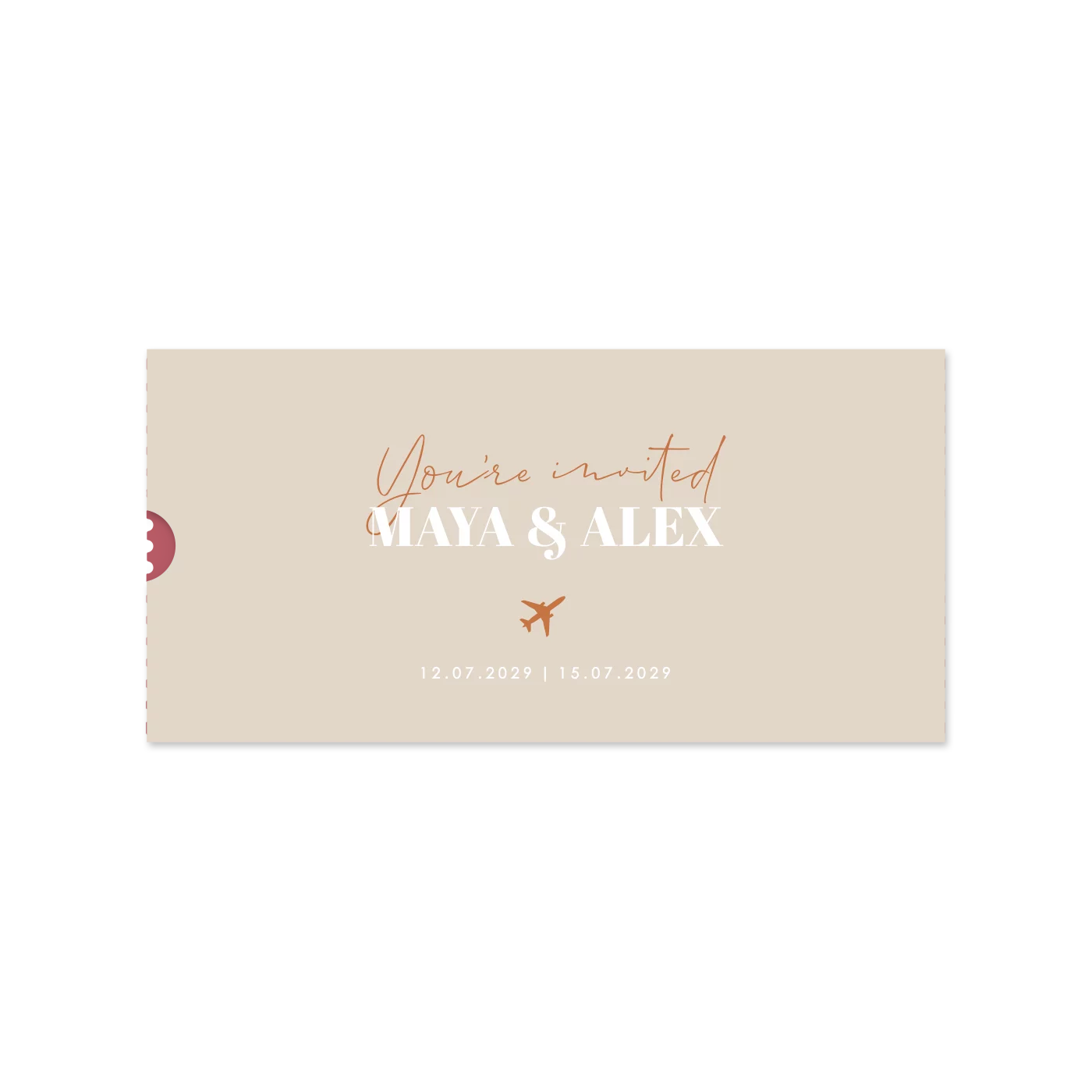 Einsteckhülle in Beige und Rot mit Flugzeug und eleganter Schrift. Die Einsteckhülle ist ein kreatives DIY-Modell – im Handumdrehen selbst gemacht!